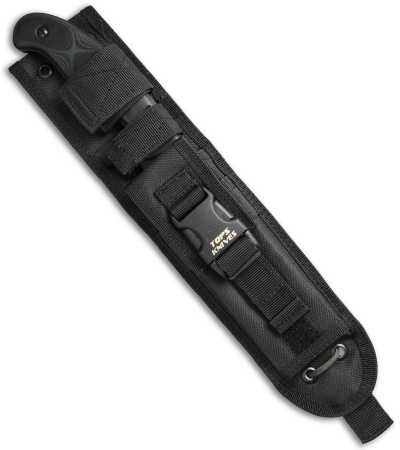 The art and science of custom knives come together in the Dakota Drifter from TOPS Knives. The two-tone, drop point blade has been individually hand ground by one of TOPS fine craftsmen. The full tang construction gives added strength and superb balance that you’ll notice each time you use it. The green and black micarta scales have a good feel in the hand and provide excellent grip. The knife comes with a black nylon sheath with a belt carry option.