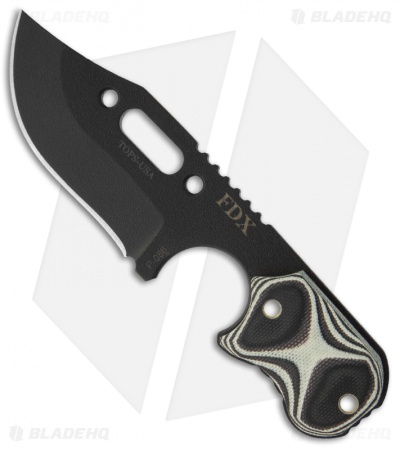 TOPS Knives FDX-02 Knife Fixed Blade Black/White G-10 (3″ Black Plain)