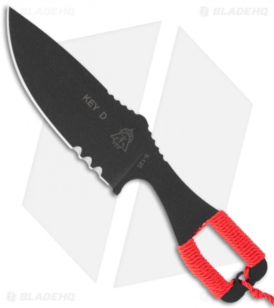 TOPS Knives Key-D Knife Red Cord Wrapped Fixed Blade (3.5″ Black Plain)