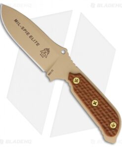 The TOPS Knives Mil-Spie Elite with coyote tan drop point blade and tan micarta handles is a lightweight yet rugged fixed blade knife.