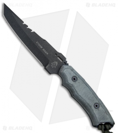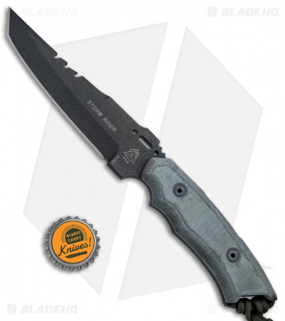 The Storm Rider Tanto knife can tackle a number of combat and survival tasks. With a sturdy 1/4″ thick 1095 steel blade it’s built TOPS tough. Solid black linen Micarta handles along with ideal finger grooves and notching provide a comfortable interface with the knife.