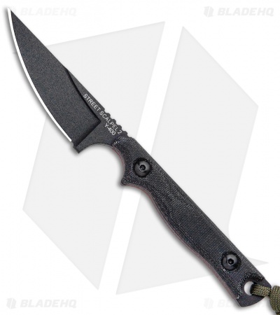 - Contoured black micarta handle scales provide a safe and secure tactical grip.
