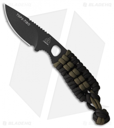 TOPS Knives Tibo Neck Knife Black/OD Green Paracord (2.75″ Black) TIBO-01