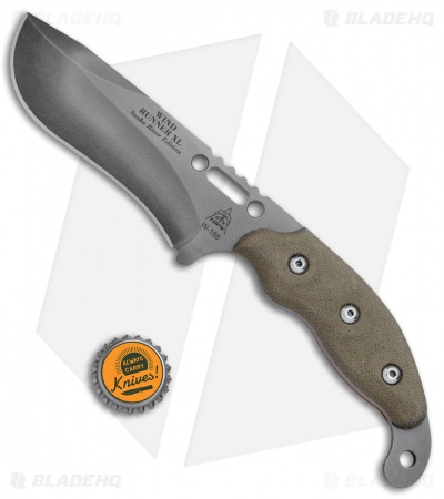 This Snake River Edition Wind Runner XL fixed blade is a re-worked version of the classic TOPS Wind Runner XL hunting knife. It’s outfitted with green canvas micarta scales and a recurve 1095 steel blade with TOPS’ Black River Wash coating.