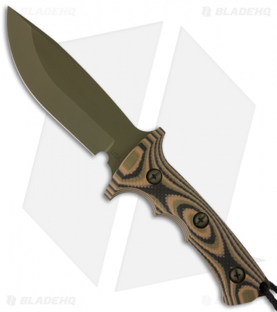 The Combat Hunter from Treeman Knives is equally suited for tactical use and hunting. It has a strong 1/4″ thick blade with a long flowing cutting edge. The O1 tool steel blade is OD green Cerakote finished and hollow ground. Contoured camo layered G-10 scales provide excellent grip. The Combat Hunter fixed blade knife comes with a heavy duty nylon sheath with blade insert and external pocket.