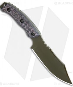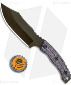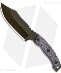 This custom small Bush Bitch fixed blade was designed to tackle surviving in the bush and tactical duties alike. It has a purple textured G-10 handle and a green finished bowie blade. Its ergonomic handle allows multiple grip options to accommodate any task at hand. This model has a hollow ground, full-tang Cru-wear steel blade with a black finish. Item includes a kydex sheath.