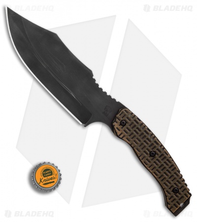 This custom Large Bush Bitch fixed blade was designed to tackle surviving in the bush and tactical duties alike. It has a multi-cam G-10 handle and a black finished bowie blade. Its ergo nomic handle allows multiple grip options to accommodate any task at hand. This model has a hollow ground, full-tang Cru-wear steel blade with a black finish. Item includes a kydex sheath.