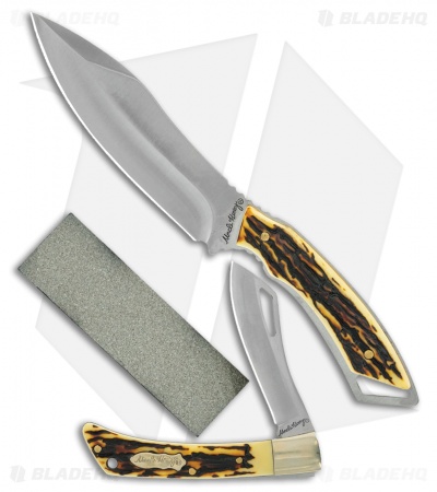 With this gift tin set, you get a fixed blade for the hard labor, a folding knife for wood-carving and smaller cuts, and a sharpening stone to keep your blades performing. The simulated stag handles are appealing to the eye while being virtually weather-proof, and stainless steel contraction gives the knives a long lifespan. Expand your collection, or someone else’s, with this awesome gift set.