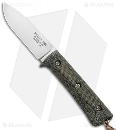 The UTK0097 Wilderness Knife offers a rugged backcountry design for camping, survival, and general utility cutting chores. It has a tough full tang blade made from A2 tool steel with a satin finish. The blade comes in a spear point style with a KS Edge spine. It has an ergonomically designed handle made from canvas micarta that is available in 4 different handle profiles. This No. 3 handle profile has a classic design with a flat spine, curved choil, and a wedge shaped pommel.