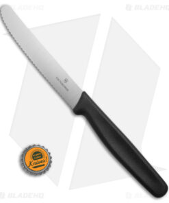 The Victorinox Steak Knife offers a simple, straightforward design that is perfect for cutting up meats and veggies on your plate. The stainless steel rounded tip blade comes with a serrated edge and a satin finish. Upgrade your kitchen utensils today with the Victorinox Steak Knife.