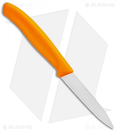 The Victorinox Classic Paring Knife offers a simple, straightforward design that is perfect for cutting fruits, vegetables, and other light cooking chores. This model is outfitted with an orange polypropylene handle. The stainless steel spear point blade comes with a plain edge and a satin finish. Upgrade your culinary skills today with the Victorinox Classic Paring Knife.
