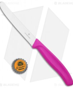 The Victorinox Classic Paring Knife offers a simple, straightforward design that is perfect for cutting fruits, vegetables, and other light cooking chores. This model is outfitted with a pink polypropylene handle. The stainless steel blade comes with a fully serrated edge that is perfect for slicing softer fruits and veggies. Upgrade your culinary skills today with the Victorinox Classic Paring Knife.