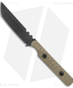 - Contoured green micarta handle for grip.