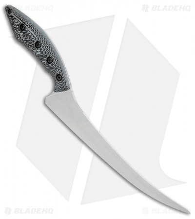 This 8.5″ Fillet knife has a black and gray G-10 handle for extreme durability and includes the White River “Stay Put” leather sheath.