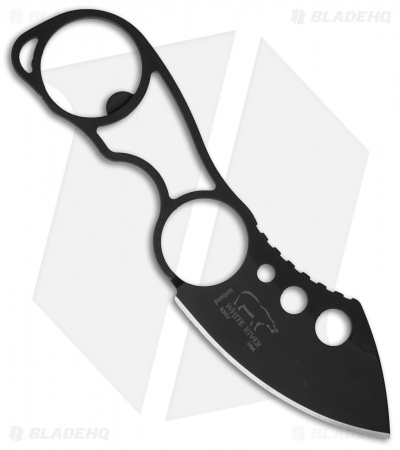The Knucklehead is a remarkably comfortable and secure every day carry neck knife. It’s strong and lightweight with skeletonized CPM-S30V stainless steel construction. The finger ring at the base of the blade works in tandem with the second finger groove to keep the knife secure in hand, and the end ring is a bottle opener. This model has a black ionbond coated, chisel ground blade. The Knucklehead is an ideal neck knife, but it includes an attachment for optional belt or boot carry.
