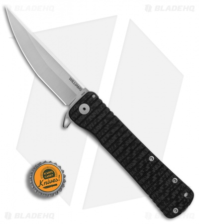 The Osoraku Zukuri from Williams Blade Design brings a bit of class to the tactical knife world. It features an elongated tanto blade made from Bohler M390 with a satin finish. The handle is constructed of a solid carbon fiber front scale with a titanium frame side. The blade can be opened easily with the flipper tab and the blade runs on the buttery smooth IKBS ball bearings.