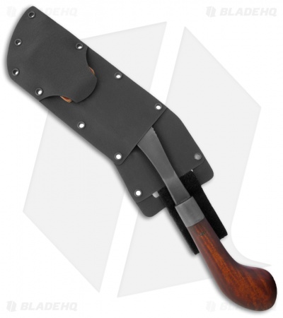 The Jungle Knife from Daniel Winkler’s Knives is patterned after an original fixed blade from the jungles of Borneo. This design provides incredible chopping power. The tang is swallowed up in the handle and the rear swell has a downward sweep that provides a secure indexed grip. The Kydex sheath has a pocket for the included DMT diamond sharpener.