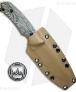 Attleboro Knives Battle Knife Fixed Blade w/ Tan Sheath (4.5″ Black Serr)
