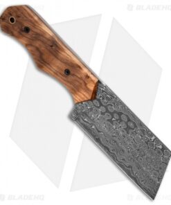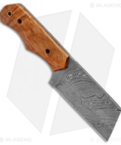 Tallen 4″ Chopper Fixed Blade Knife Wood (4″ Raindrop Damascus)