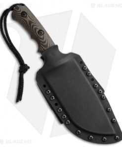 Treeman Knives The Beast Fixed Blade Knife Tan Micarta (5.875″ Black Plain)